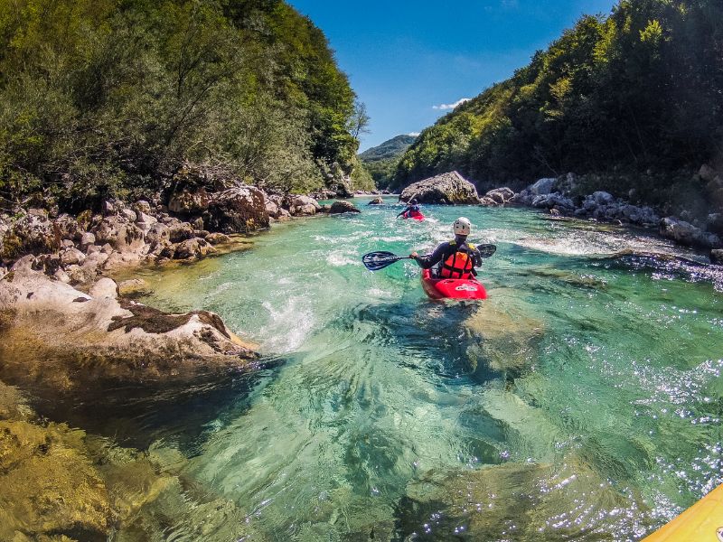 Za tiste, ki bi želeli doživeti reko Sočo na bolj individualen način pa organiziramo vožnjo s kajakom, kjer se spustite po mogočni reki in odkrijte njene skrite kotičke ter uživajte v miru in tišini narave, ki vas obdaja.