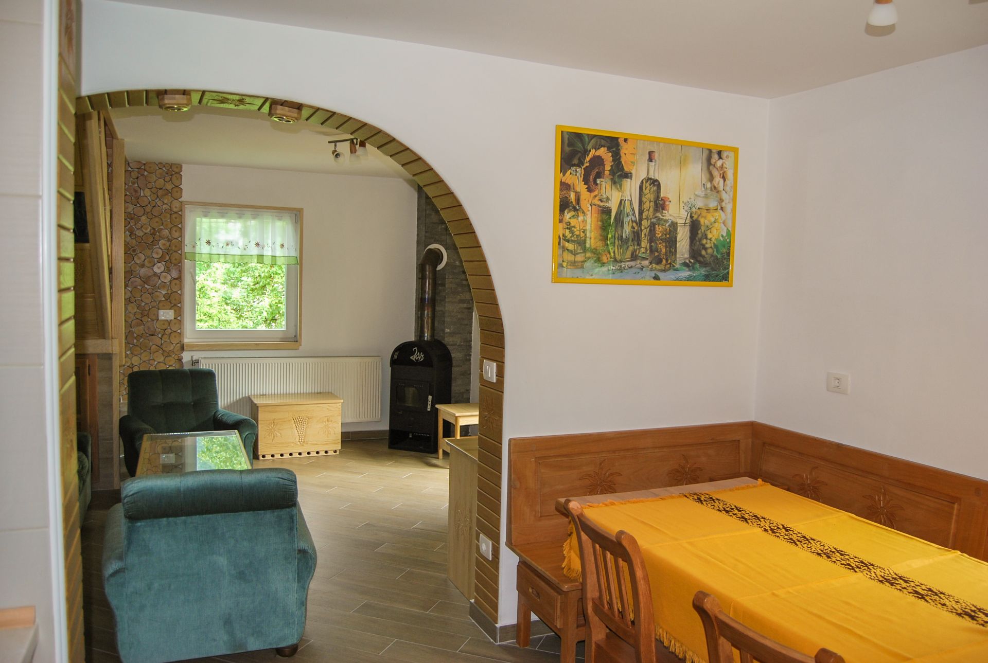 Nastanitvena enota lahko sprejme 10 oseb. Apartma obsega 5 spalnic, od katerih je v štirih zakonska postelja, v eni pa pograd. Apartma ima kuhinjo z jedilnim kotom, dnevno sobo z balkonom in dve kopalnici. Gostje lahko brezplačno uporabljajo parkirišče, WiFi in letno kuhinjo.